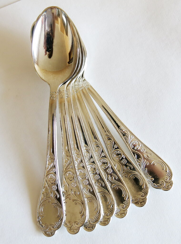 They have a traditional shape with an unusual chased design of handles on the type of tying ribbon along the contours. These items can be used both in everyday life, and at the meeting of honored guests. Stainless steel thickness 2.5 mm.