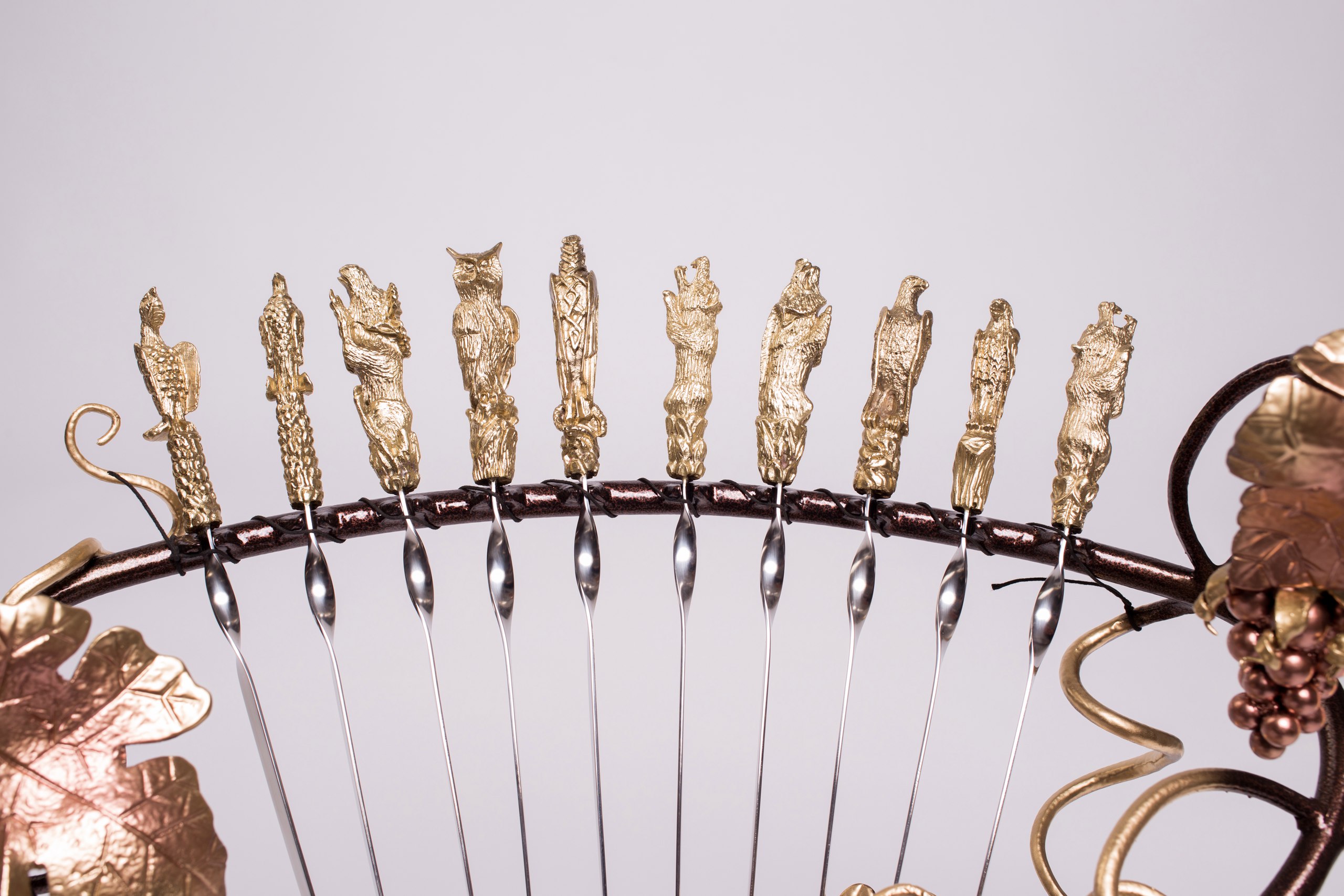 - since the dishes are cooked on fire with coal, the shovels and forks must be long-handled so as not to heat up; in addition, the material from which they are made must be heat resistant; poor-quality metal will quickly turn black and deform;
