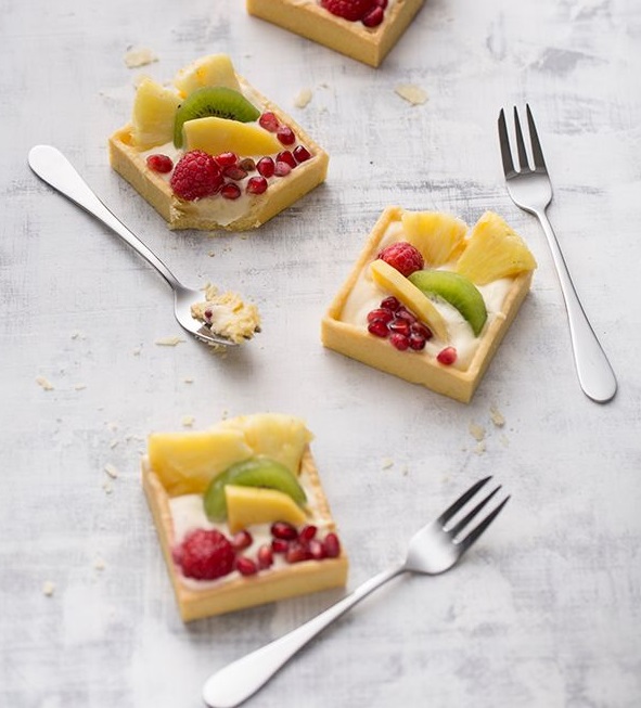 A knife for desserts is approximately equal to the diameter of the dessert plate. The spoon should be slightly shorter. A fork in this case is crowned with 3 teeth. Dessert knives and forks are used to serve: