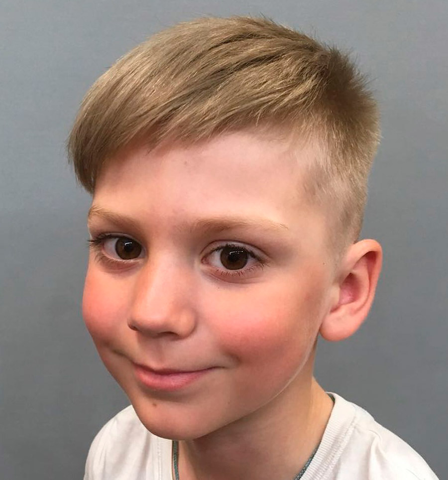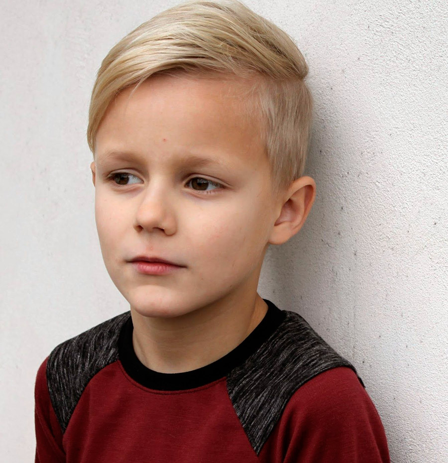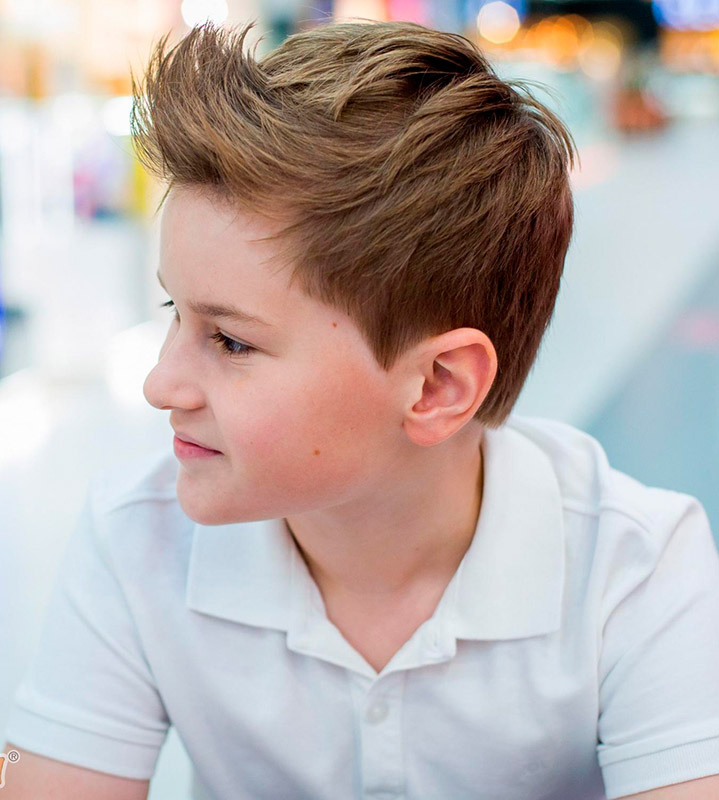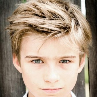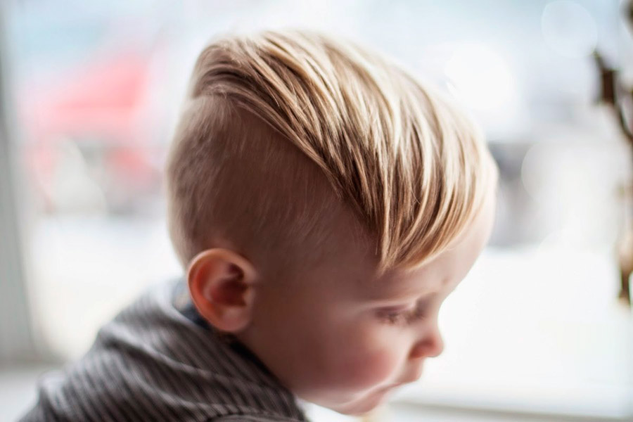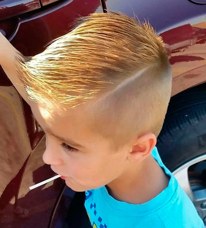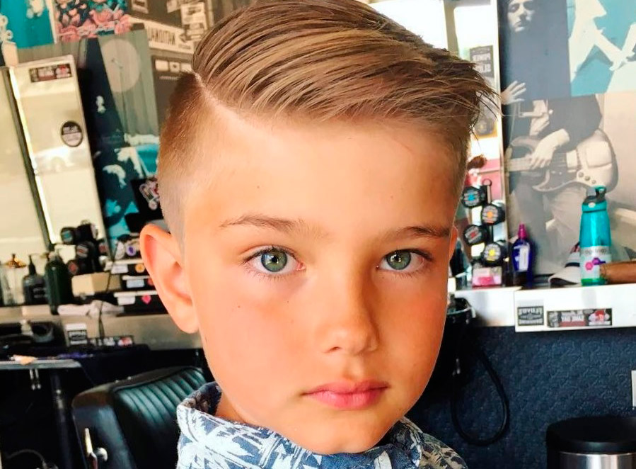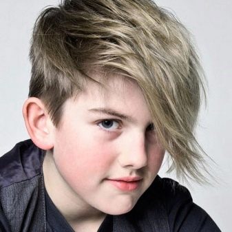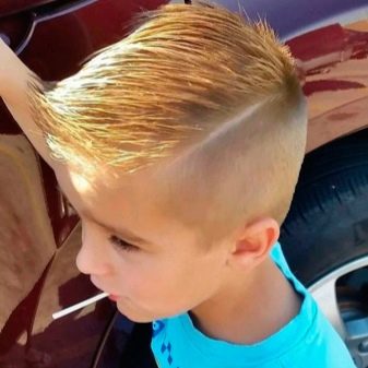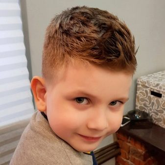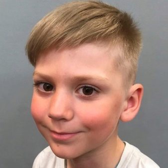 For boys of 6-7 years old, a hairstyle with side parting from thick strands of different lengths is perfect. At the same time, both sides are either shaved with a typewriter, or simply shorn as short as possible.