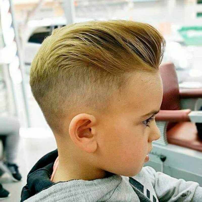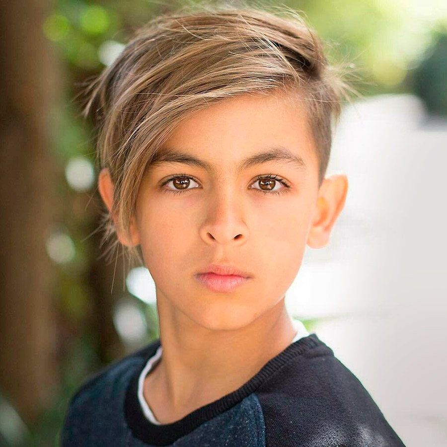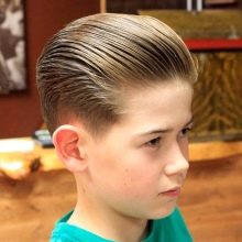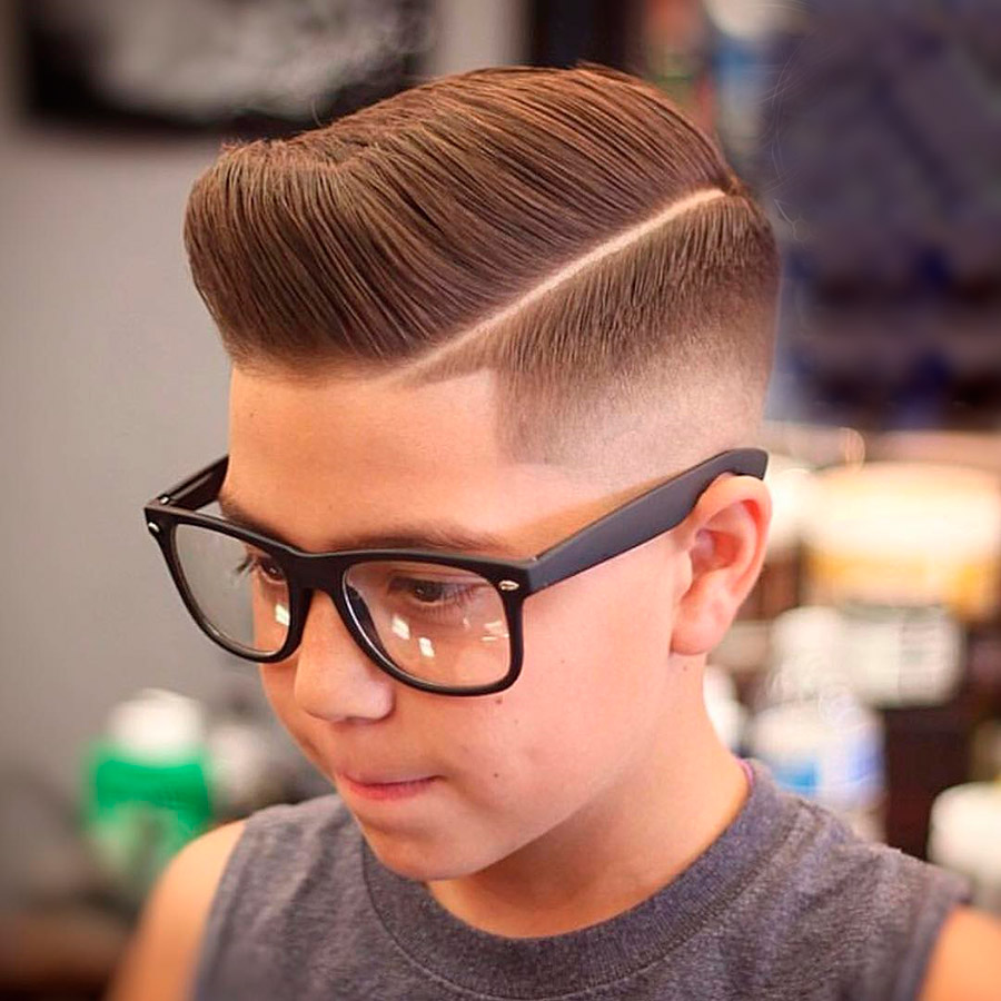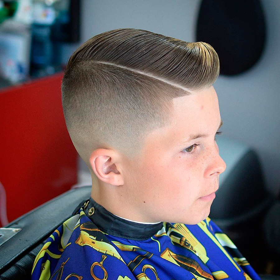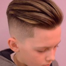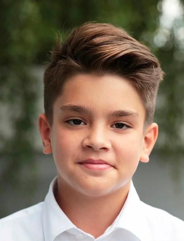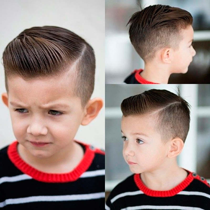 For boys of 6-7 years old, a hairstyle with side parting from thick strands of different lengths is perfect. At the same time, both sides are either shaved with a typewriter, or simply shorn as short as possible.