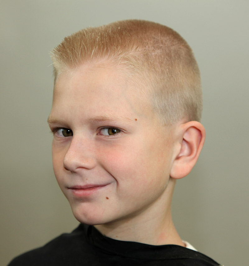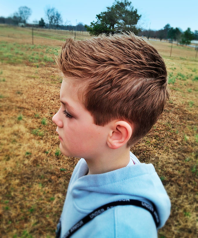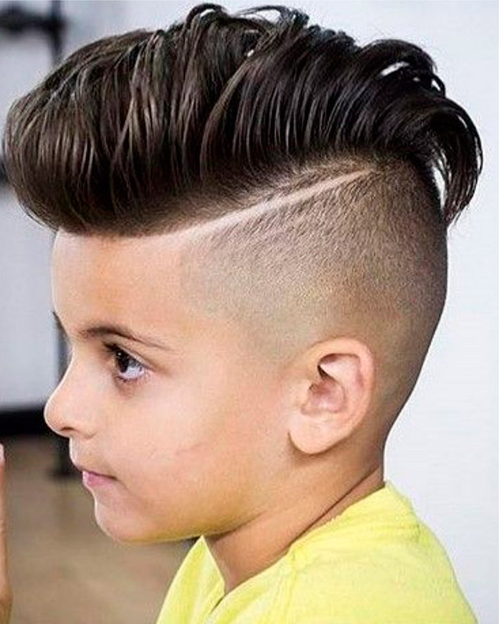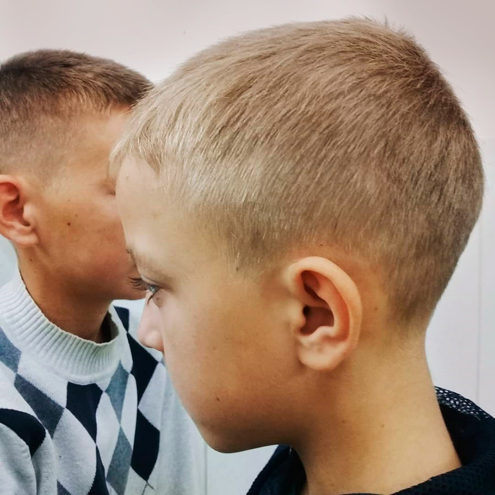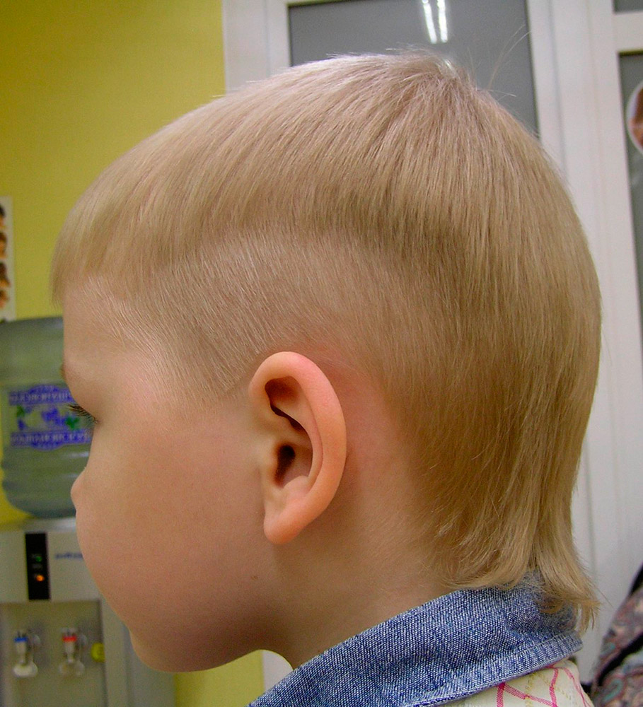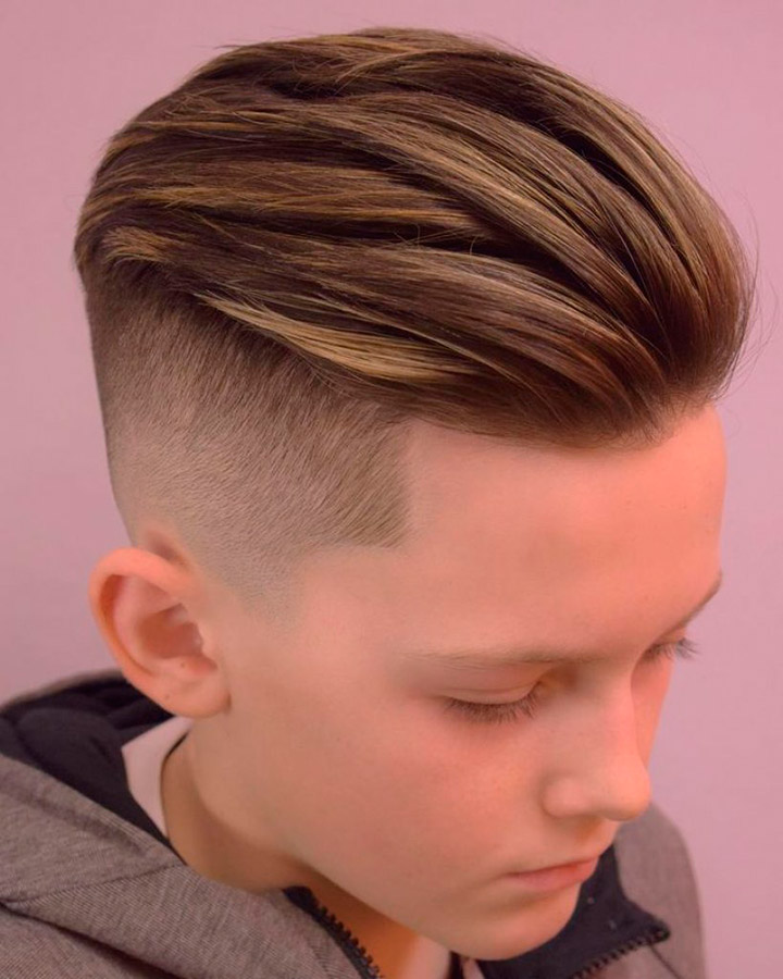 For boys of 6-7 years old, a hairstyle with side parting from thick strands of different lengths is perfect. At the same time, both sides are either shaved with a typewriter, or simply shorn as short as possible.