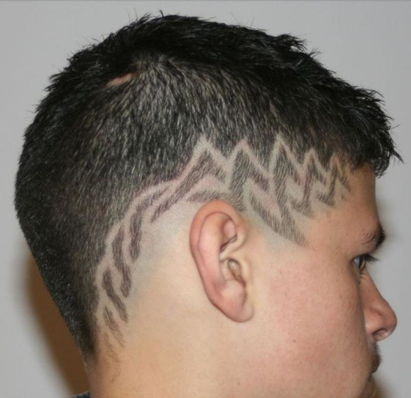 - Haircuts with a pattern very popular among adolescents and boys of transition age. With the help of a clipped pattern on the temporal part or on the back of the head, a “little man” can declare his individuality. Creating a pattern, of course, will require some skill. But with due diligence to master this technique will turn out at home.