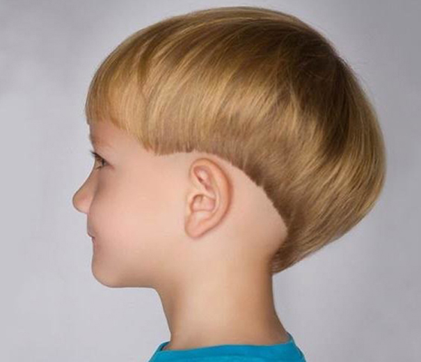- "Under the pot" - a fairly common hairstyle. It suits boys with straight, not too thick hair. The haircut is distinguished by a rather long bang and an even cut of the hair along the line around the head circumference. The length of the "shock" should reach the ears or a couple of centimeters below.The hair on the lower part of the neck is clipped almost under the “hedgehog” with the help of a typewriter.