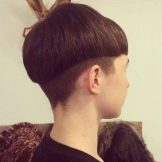 - Reduced in comparison with the size of the head option. The technique of execution is as follows: the hair on the back of the head is significantly shortened with a machine. The region of the crown is cut by overlaying a strand on the strand. The length of the bangs is adjusted according to the total length of the haircut.