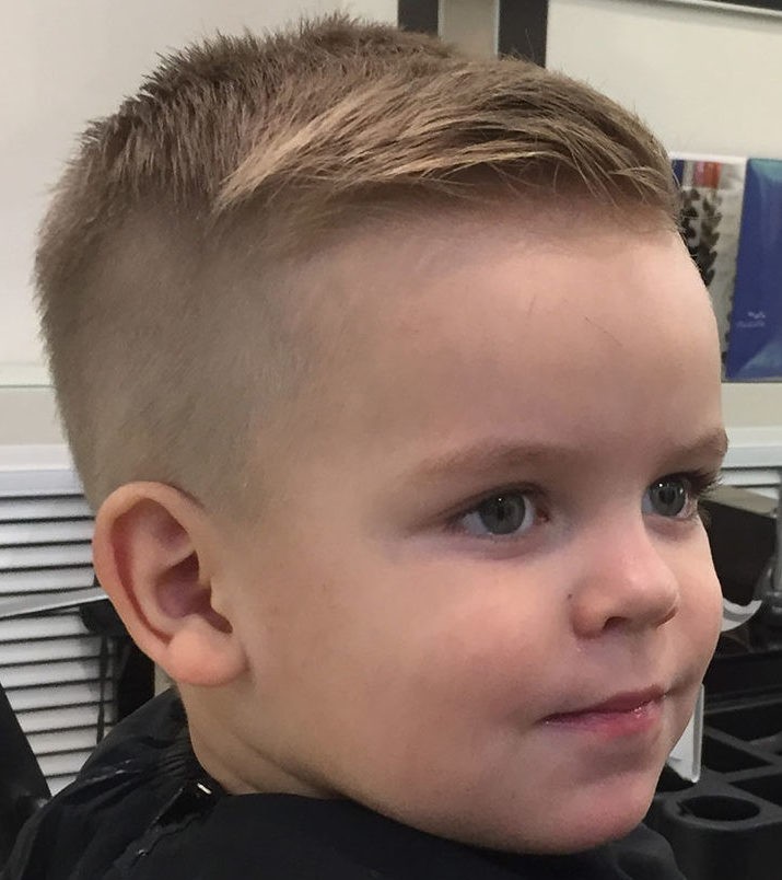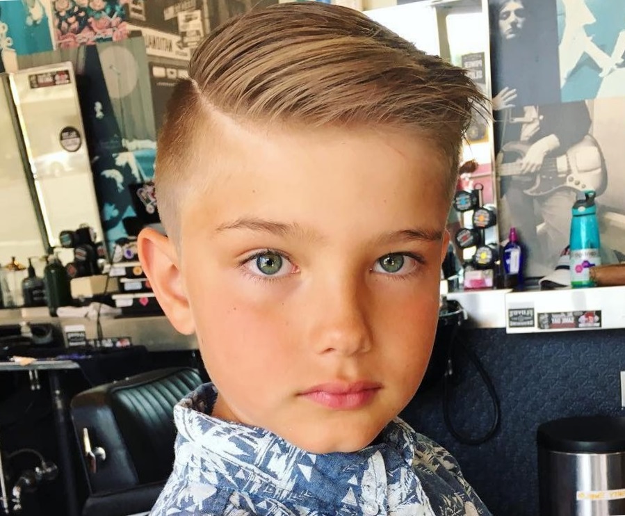 Option beaver suitable for boys with large heads. This haircut visually makes the shape of the skull smaller. On the parietal region, the hair is clipped under a flat area. If the child has a broad face, then the pad runs longer, and if thin, then shorter. Whiskey and neck shaved as short as possible. The corners between the temporal, occipital and parietal regions are soft and rounded. Stylists are not advised to do a haircut, if the hair is sparse and soft. Preference is given to thick and hard hair, thanks to which you can create the necessary area for a haircut.