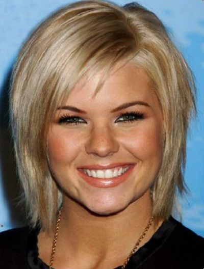 - For owners of a round face it is worth using this haircut with care, as the volume top rounds the face even more. But even in this case, the form is not a serious problem, one has only to wear an asymmetrical bang, which somewhat lengthens the face.