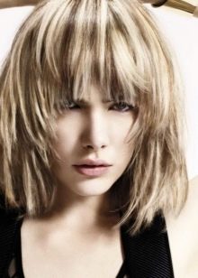 It is carried out by trimming the strands with “steps” in the technique of superimposing them on top of one another. In the crown part of the head, the curls are made shorter; the sides of the head are asymmetrical, with sharp transitions. At the tips made filirovka. Due to the multi-layeredness of this haircut, it is recommended that owners of a not-too-lush head of hair with thin, thin hair be carried out.