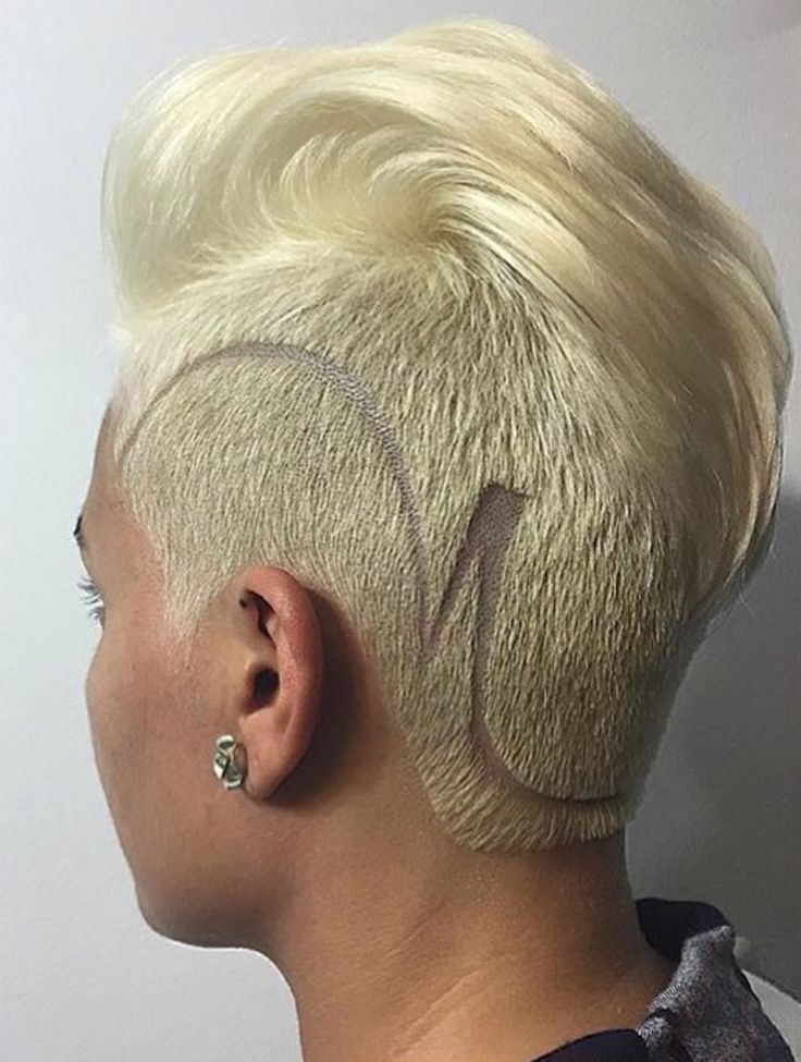 - With the transition to the occipital part of the head. There is a place where particularly brave ladies can roam. You can shave hair from one side and go to the back of the head, you can - from two. You can generally restrict only the occipital part. This hairstyle looks even better when shaved patterns, hieroglyphs, logos.