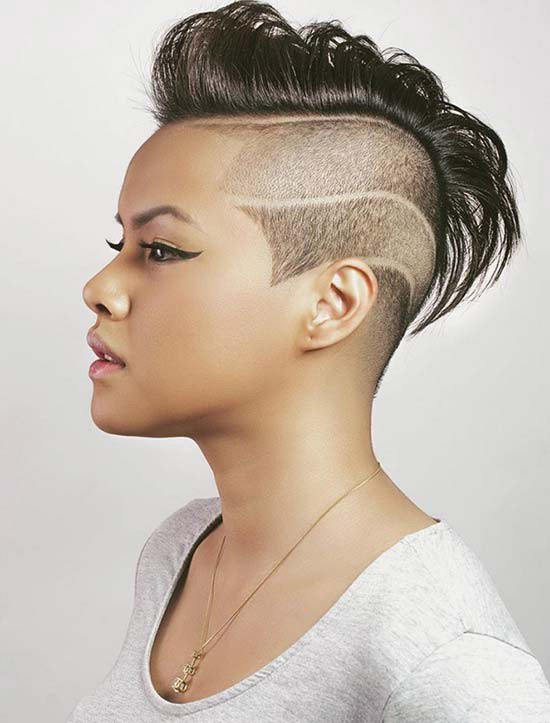 With shaved temple