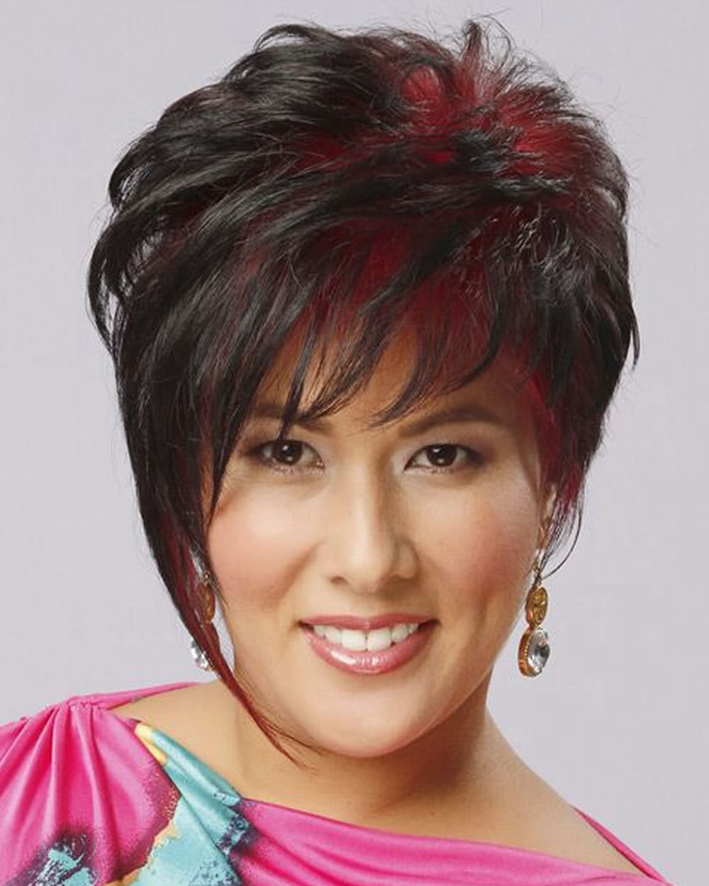 Bang in the hair is used to make a long face rounder. However, it is not appropriate for every woman's age. For example, a bang is appropriate in the asymmetry of a teenager's hairstyle, and the length of a bean can be either ultrashort or lengthening, straight or oblique. Best of all the bangs look at a small length. To make it look good in the image of a mature woman, you need to limit the length of the haircut itself. In this case, the length should be short, and the line of the diagonal should not be too sharp.