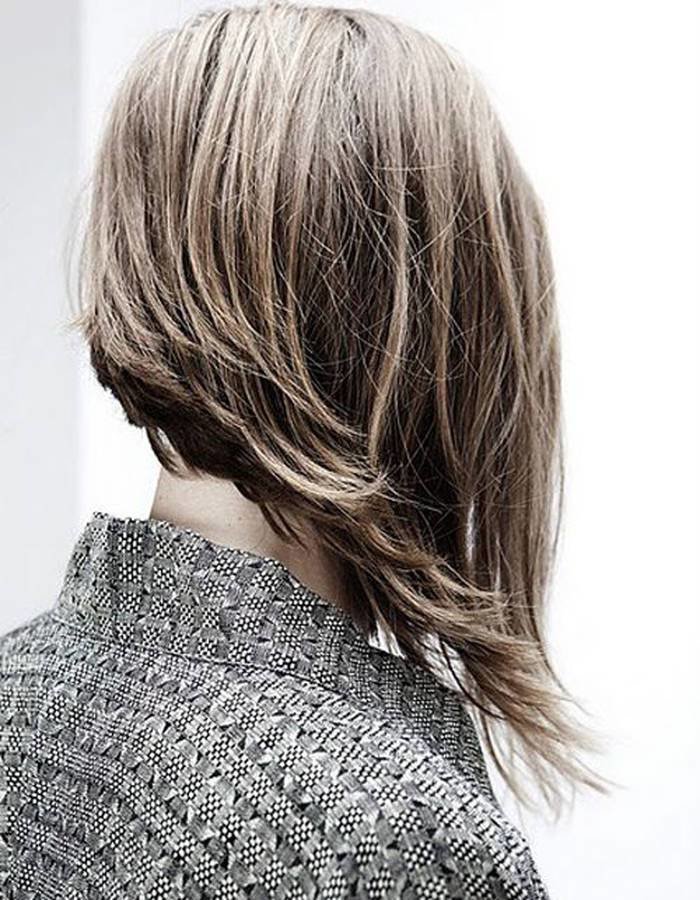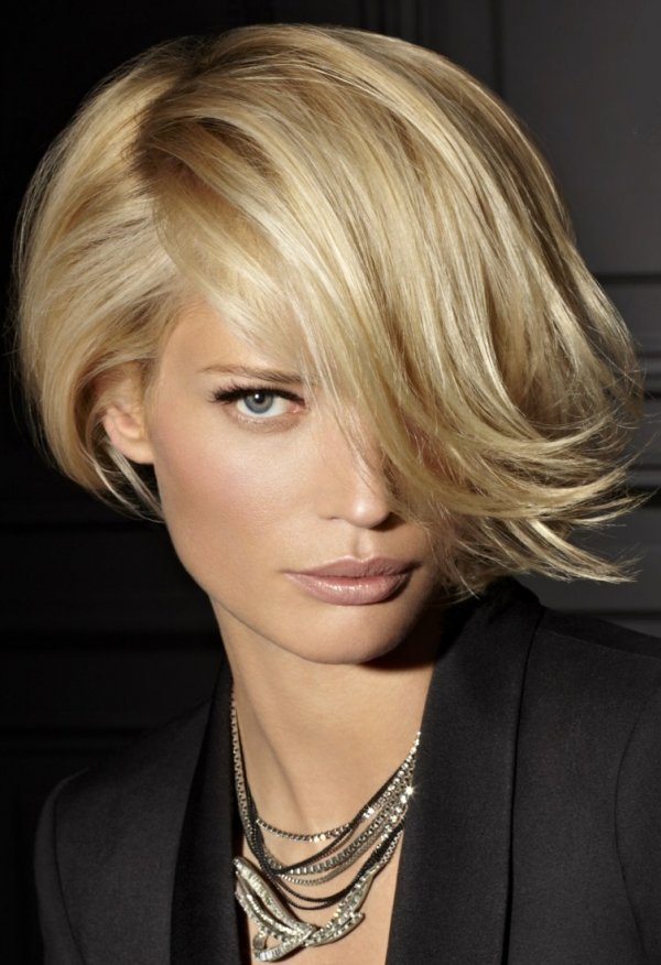 The hairstyle emphasizes the neck, gives a visual proportionality to the face. However, it is demanding styling, otherwise it may seem a wig. For example, you can use light whey or milk for this. The diagonal line of length distinguishes the hairstyle itself. On the one hand, the hair is shorter than the other.