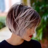 In the traditional performance of bob-hair, the hair barely reaches the back of the head. Strands around the face often get tucked behind the ear. Basically graduation is done on the hairs on the back of the head, and the tips are milled. Haircut seems childish perky, bringing softness and lightness to the image. With this hairstyle, it is easy to visually “reset” for several years.