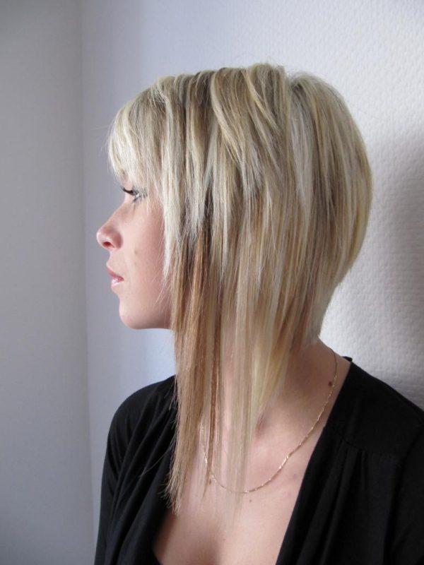 - Classic bob-caret with lengthening performed with a smooth transition from a rather short strand on the back of the head to the long frontal strands. At the request of the client, the master can make an extreme lengthening, at which in the occipital zone the hair should be short and cut toward the temples at a large angle. The frontal strands have acute-angled tips and can reach the clavicle.