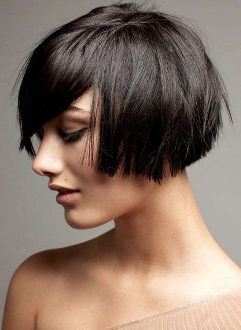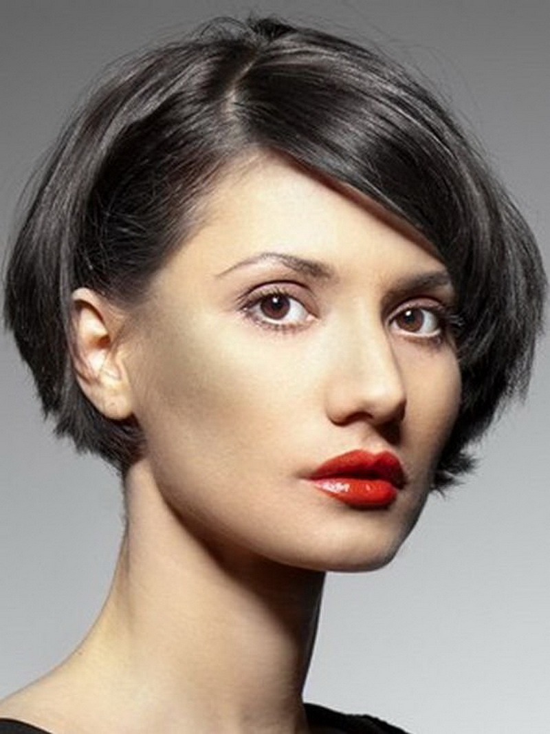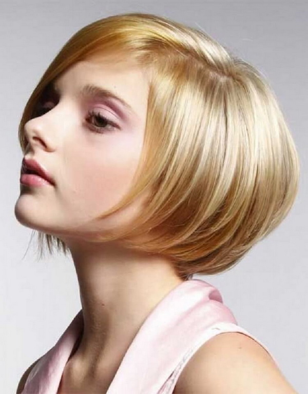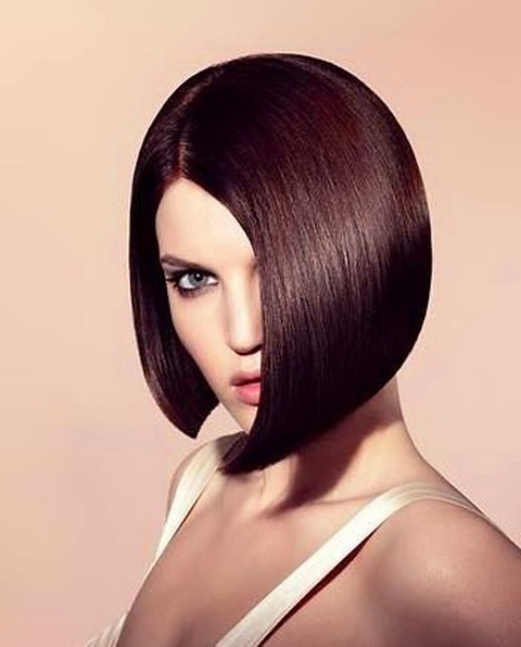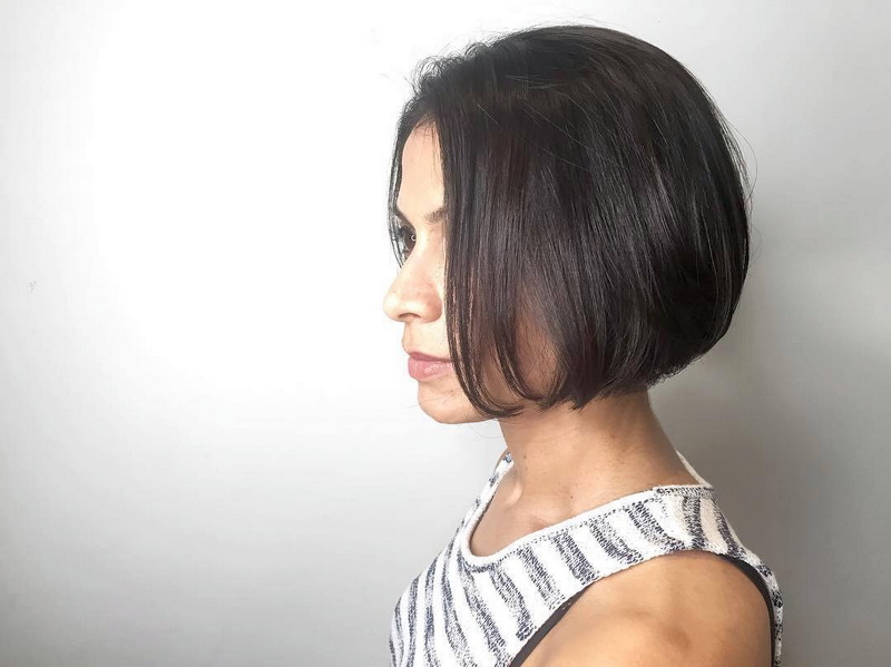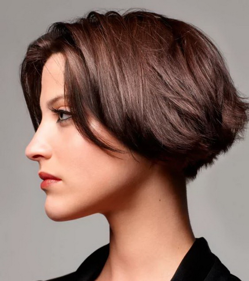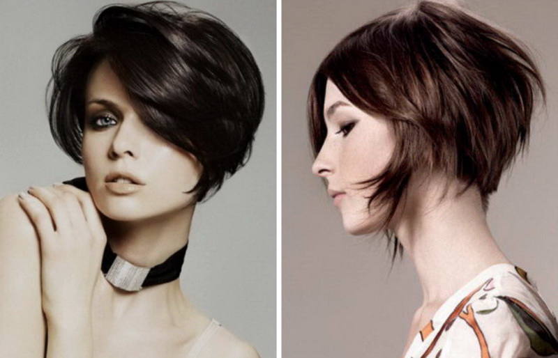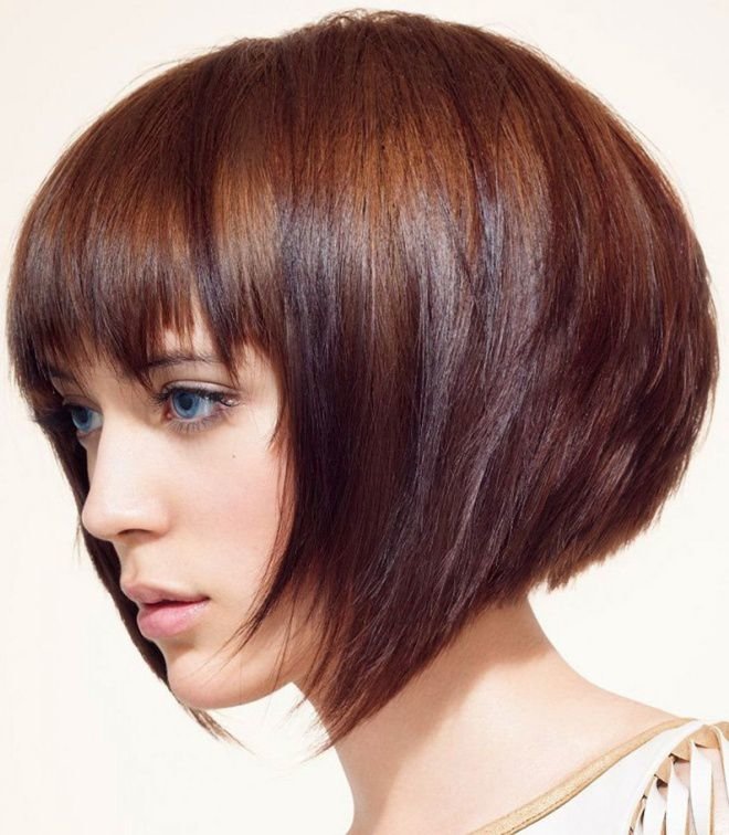 Short bob karab is the most practical, but at the same time feminine, option. In it, the front and rear strands may not differ much in length, or the difference between them may be small. A small cut at the back will give the hairstyle a more rounded, soft shape. The cut line in this variant may be thin, with sharp strands. This is a great option for women with straight hair, on which any styling keeps bad. To make a variety, it is necessary to work out the bangs - because it can be the same length with the side parts.