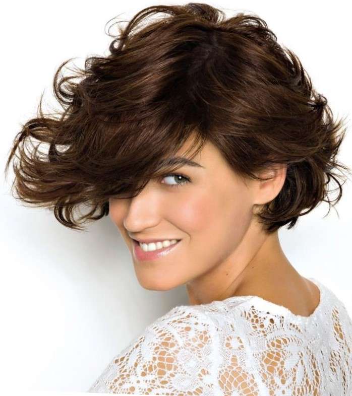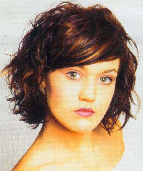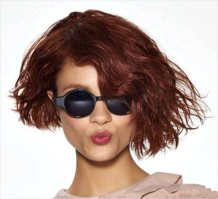 The bob is a short haircut with a volumetric top and a long bang. Many romantic ladies prefer to wear this hairstyle, as it helps their self-expression. There are quite a few options for such styling: you can slightly shave the temples, make oblique bangs, instead of a straight one, or cut your hair asymmetrically, leaving the front hair slightly longer than the back. On wavy strands, the bob looks good in the case of a fine structure, they are easier to lay and hold volume for a long time. Thick, heavy curls quickly lose their shape. Owners too lush hair will have to constantly lay curls, so as not to look like a dandelion.