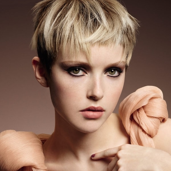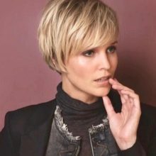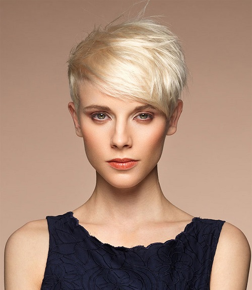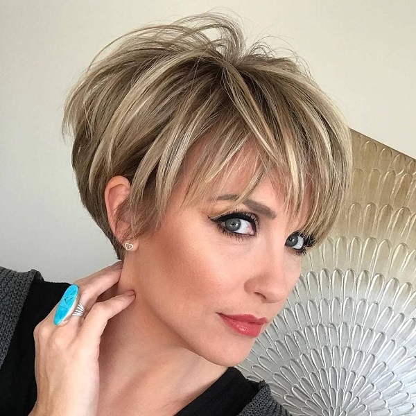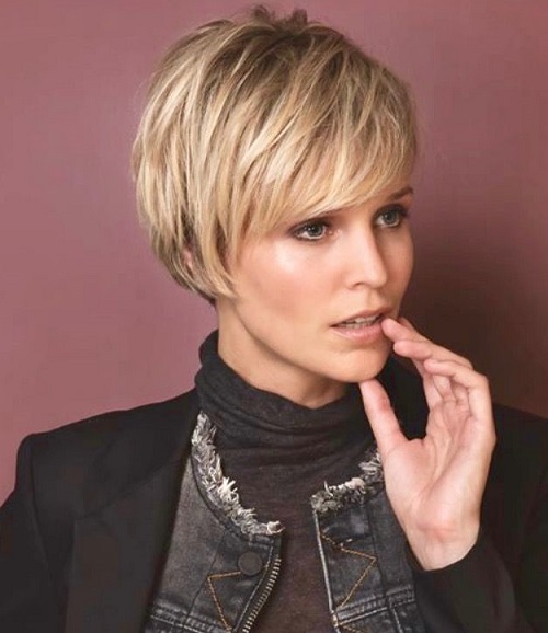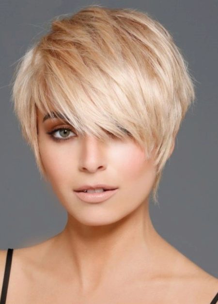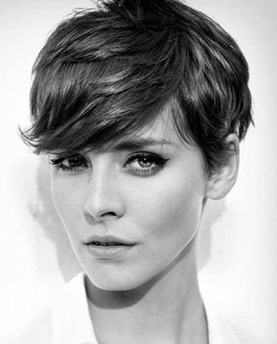 If you want a minimum of care at maximum effect, you should choose a short pixie hairstyle (not super short length) and a ragged bang, which adds style of freedom and creates an interesting touch in the image with a twist.