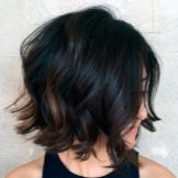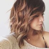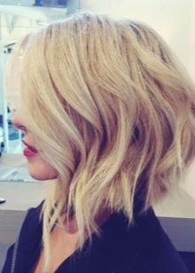 Such a haircut on wavy hair looks great without a bang. With the help of modern methods of staining can create stunning images. So, wavy hair, trimmed in this way, look good if they were painted in the technique of balayazh or ombre. Experts note that this haircut on medium hair is quite simple to carry out. In order to cut the curls in this way, the wizard performs the following manipulations.
