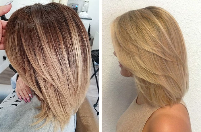 It is possible to create a unique stylish image by means of a haircut made in multilayer technique. This option is called a graduated bean. Stylists say that the owners of any face shape can cut their hair in this way. The advantage of this haircut is also the fact that you can apply various modern methods of dyeing. This haircut looks beautiful even on thick hair. It gives them even greater volume. However, the curls do not look too heavy. This option is great for shoulder-length hair.