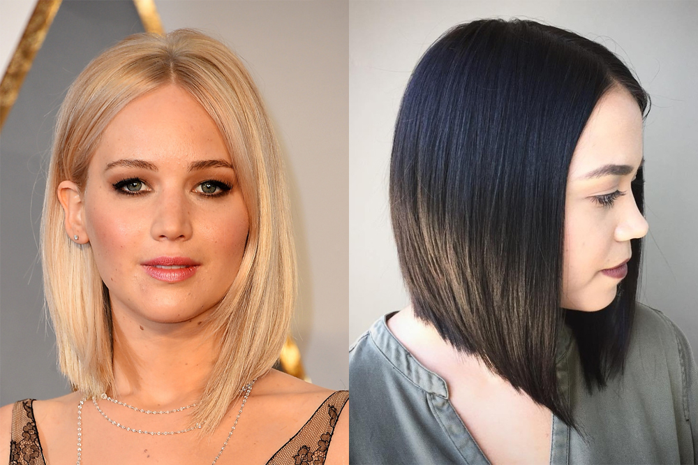 Hair, trimmed in this way, look very stylish and beautiful. Many beauties choose bob with lengthening because it is easy enough to lay. This haircut is performed on hair of different lengths. You can make it at any age, and at the same time your hair will look very beautiful. An elongated bean can hide the flaws of almost any person and at the same time emphasize its merits well. This haircut is also suitable for any face shape. The following table shows the effects that can be achieved if you cut the curls in this way.