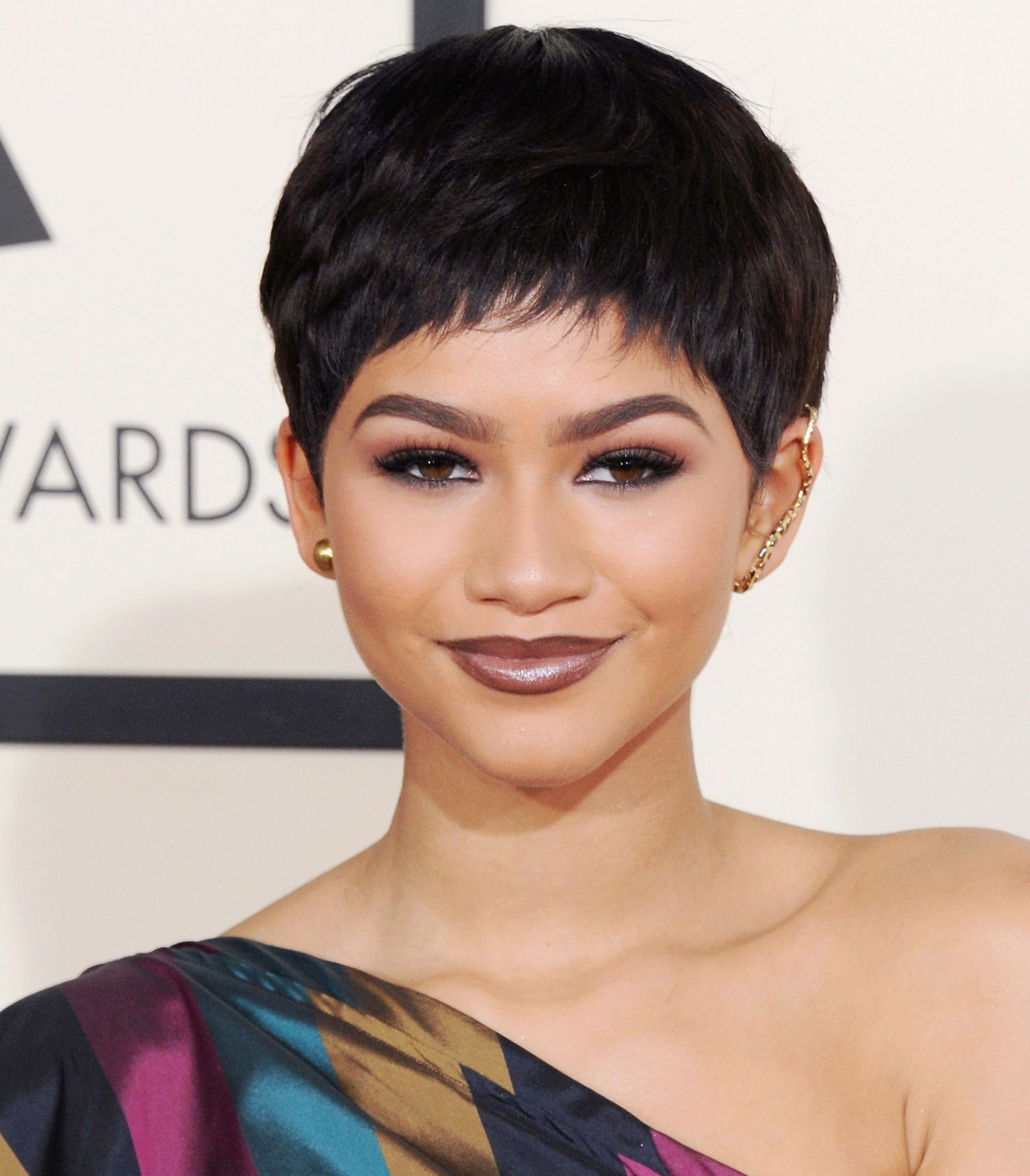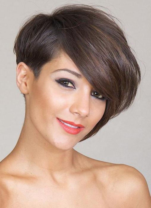 - Pixie Many brunettes are afraid to make such an original version, as they consider it boyish. Despite the popularity of such variations among the stronger sex, it is ideal for many women. The bulk of the hair remains on top of the head, creating volume. At the temples and the back of the head the hair will be cut rather short. Often for this even use the machine. If you have straight and thin hair, you should try this option. With this arrangement, the hairstyle will lie in a given direction, and thin hair will have additional volume due to styling.