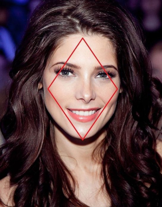 - Rhombus. This is a more elongated shape than a circle, but the cheekbones are quite wide. To visually correct this form, locate the main volume in the area of the cheekbones. It works great bangs. It will hide the narrowed forehead, balancing it with the cheekbones.