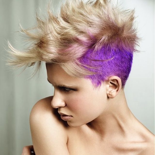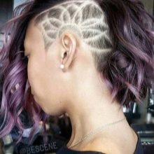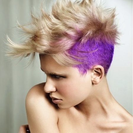 The summer months are a time of experimentation, and it is at this time that you can paint in a bright pink shade and cut out a mohawk that will be surrounded by shaved stripes. Creative design of the neck will also be useful.
