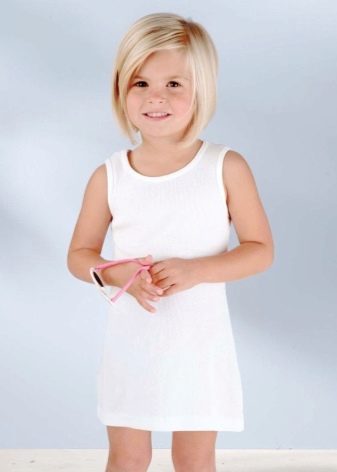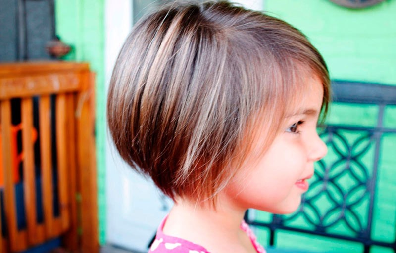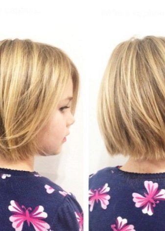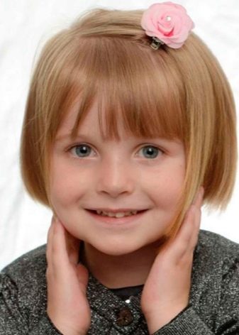 With a girl of 5 years, you should definitely discuss what hairstyle she wants, with regards to the presence or absence of bangs, as well as length. At this age, you can begin experiments, for example, by making the length of the lower cut line at the back of the head unusual and giving preference to a square on the leg. The simple style will be organically combined with children's features, and the image itself will be very effective. In addition, the square on the leg refers to practical haircuts, convenient for everyday wear.