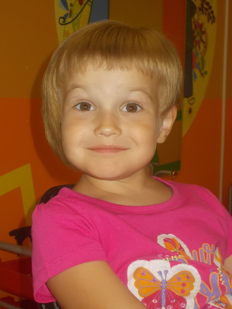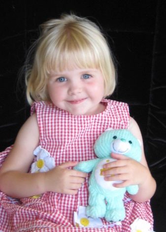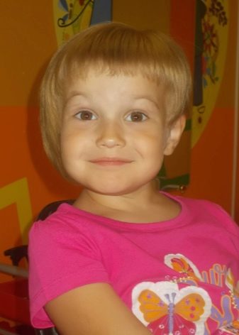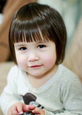 In three-year-old girls, the hair is still too fragile, so it is a short haircut that is as relevant as possible and does not traumatize its structure. However, at this age you can already grow bangs. It is important that it is short and reaches only to the middle of the forehead, and also in no way interferes with vision. The very same haircut can be a square, a little ladder or a page hair. Thick curls are recommended to cut with steps, and on thick hair a cascade with bangs will look good.