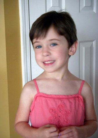 At the age of 4, the girl's hairstyle should be very comfortable, not interfering with playing, running and actively manifesting itself. Equally important is the ease of care. As an option, it can be a haircut page, which makes it possible not only to wear it in its basic form, but also to do simple hairstyles. The hair is either gathered in a pair of tails on the top of the head, or else, separated by a straight parting, are twisted in different directions towards the ears and fixed in the same place with comfortable hairpins.