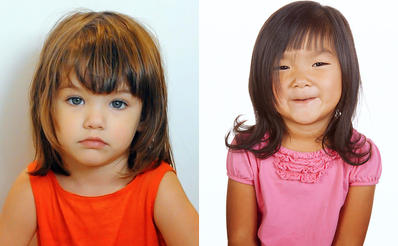 For children, as well as adults, it is important to select hairstyles that fit the face. And the same hairstyle can take on different variations. For example, an oval face looks good with a square with long, smooth strands on the sides, but for a round face these strands should be shortened and rewarded with a short tip, plus add bangs. The same can be said about the bangs, which are often complemented by a short haircut. An oval face will suit any hairstyle with or without a bang, but in the case of an elongated oval, the presence of a bang is obligatory.