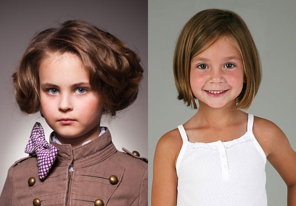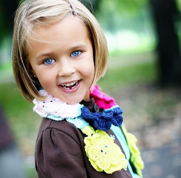 Haircuts of such length look stylish and beautiful. Very convenient and practical option for a little girl. A big advantage is the ease of care. Hair need to be washed quite often, but styling is a simple drying. If desired, you can decorate your hair with various accessories and add hair bangs. It will help to correct the shape of the face or hide small defects. This hairstyle is particularly relevant for active children, who often stuff cones.