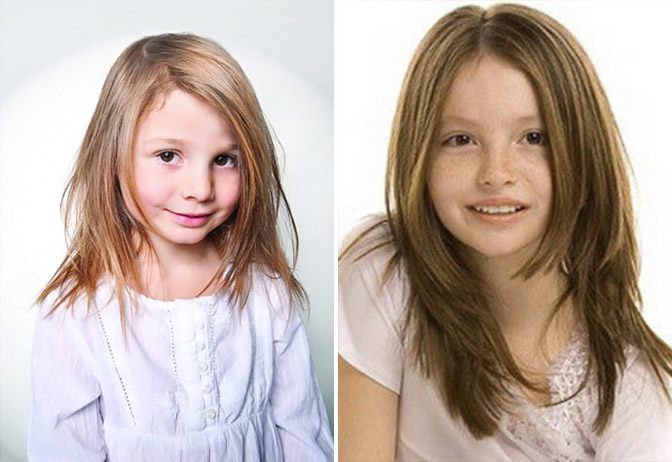 From this age all the fun begins. The length and thickness of the hair already allows you to choose a haircut from a variety of options. Bob and square are suitable for active children who simply can not sit in one place. In this design, the hair looks neat and well-groomed, but does not interfere. For girls with a more relaxed character, you can choose longer haircuts.