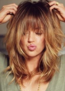 - multi-layered cascading haircut will help you create a spectacular image and distract attention from problem areas with the help of elegant curls: the cheekbones and chin will not seem sharp, and the nose - long;