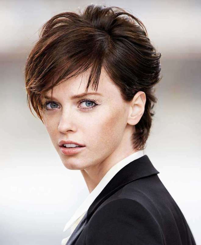 - a short haircut is not the best choice for a woman with a thin face, and if you are eager to have a short haircut, choose multi-layered haircuts with thick trimming, strands of contrasting length, playful and flirty.