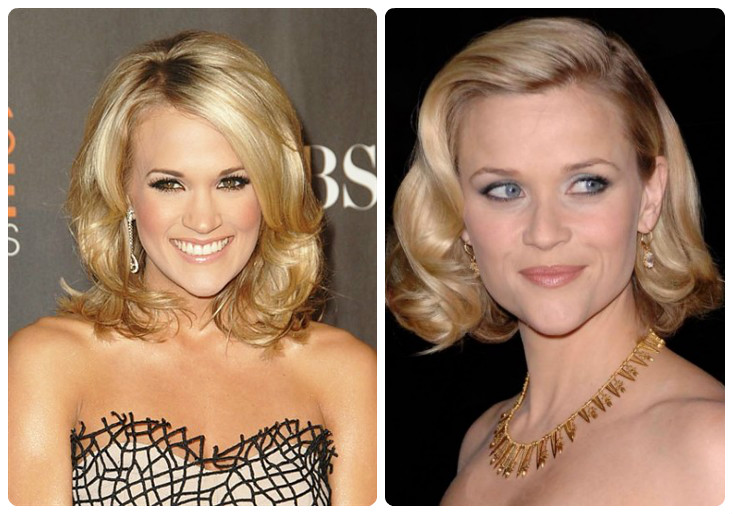 Neat and gentle curls will help to soften the angularity of the triangle shape. Twirl the hair preferably from the middle of the curl, and not from the roots.If desired, the strands can be shaped only at the ends. A long bob will remarkably soften a pointed chin. When choosing a short haircut should stay on the version with bangs.