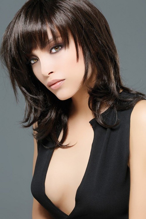 Volumetric bangs are an option that professional stylists very often recommend to their clients in order to emphasize the expressiveness of the eyes and slightly level out certain flaws in appearance.