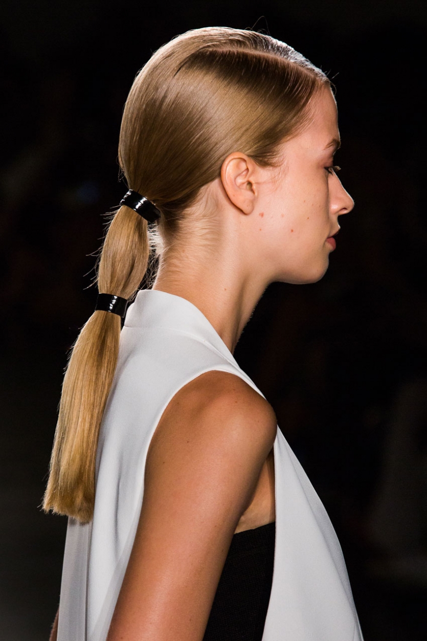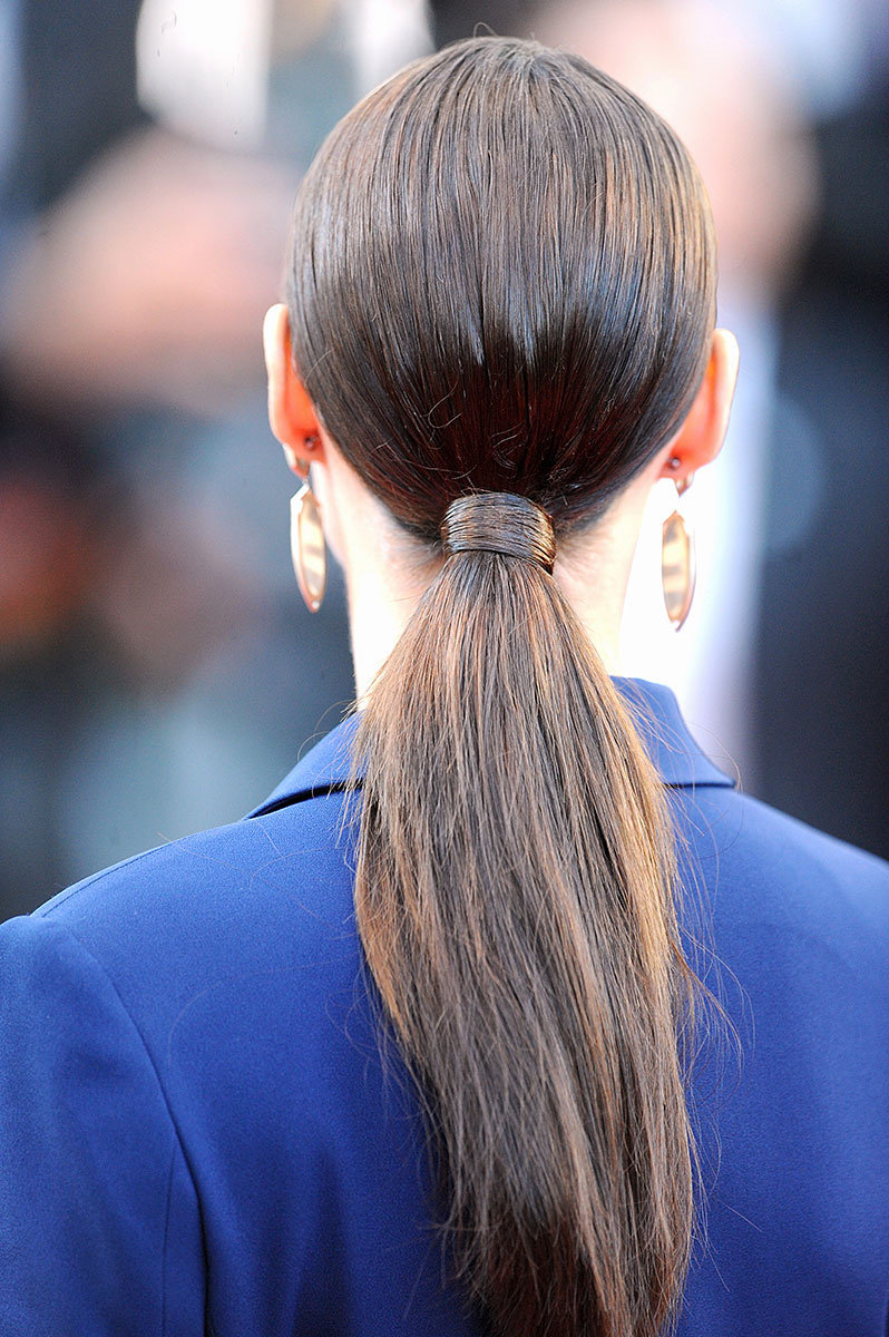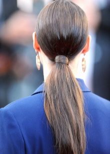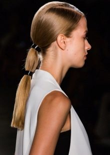- collect them in the back in a low "tail" in the center of the neck and secure at the base with a tight elastic band;