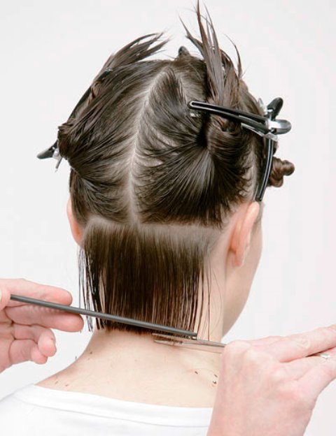- align each successive part of the hair on the control strand and cut at the level of the previous cut, thus equalizing all the hairs in the back of the head.