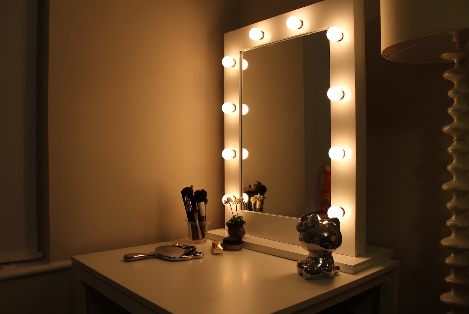 The place where you plan to trim the hair must be in front of a large mirror with a good view and be well lit. Cramped conditions (small mirror and lack of light) will not allow trimming the hair neatly and evenly. It will take another small mirror to view the result from the back of the head.