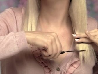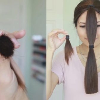 We collect well combed hair into a ponytail and fix it with an elastic; it should be located below the back of the head in close proximity to the lowest hairline.Carefully combing the tail, wet it over the entire length, if the hair is dry.