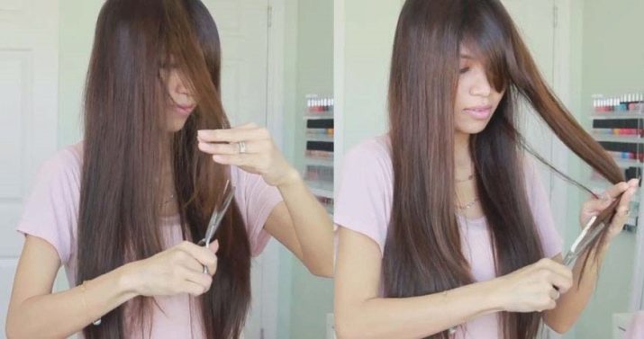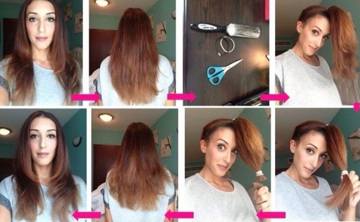 But if your goal is to cut out or shorten the length of the bang or to cut the ladder in the temples, then such manipulations can be done independently. For long hair there are at least 3 ways of trimming the tips, implying different methods of capturing them: harnesses, a tail at the crown, a low tail fit. The other methods of trimming the tips, such as 2 tails, 6 tails, combing hair forward and some others, are used less often.