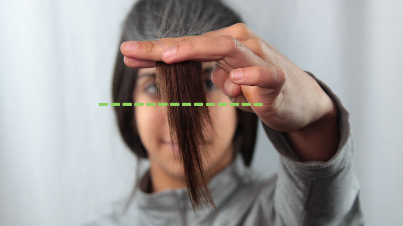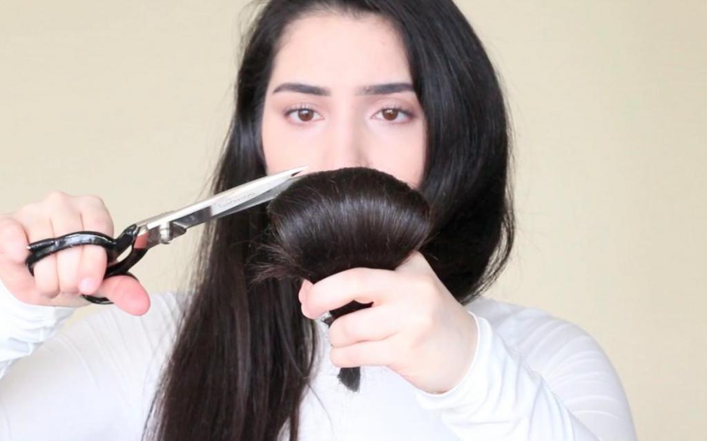 - When approaching the first strand, you should cut the length so that the top of the cut is slightly shorter than the bottom. Need to move up from the bottom.