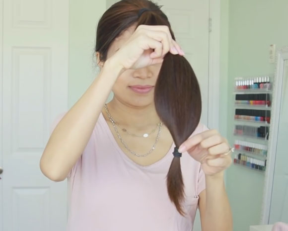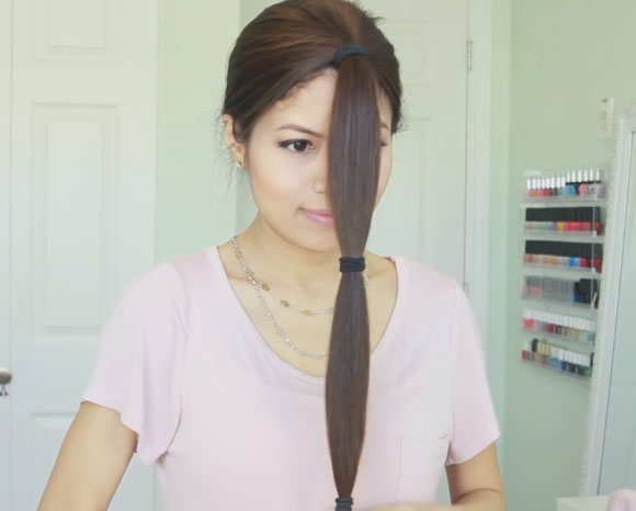 - Now tighten the hair in a tight and steady tail in the area of the crown.