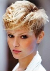 - Creative artists can allow themselves to create a bold, original styling - this will require using a modeling gel to raise hair in the root zone and dry it. Against the background of the total volume, individual strands are pulled out using a curling iron or iron, give them the desired shape, fix with styling paste.