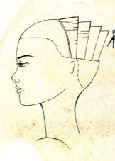 - Then proceed to the processing of the upper and middle parts in the back of the head. Haircut is carried out according to the method of "vertical graduation." Strands cut off, keeping an angle of 45 degrees.