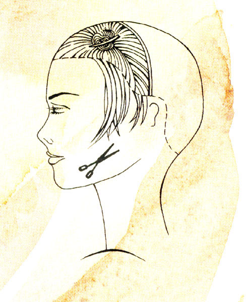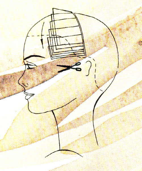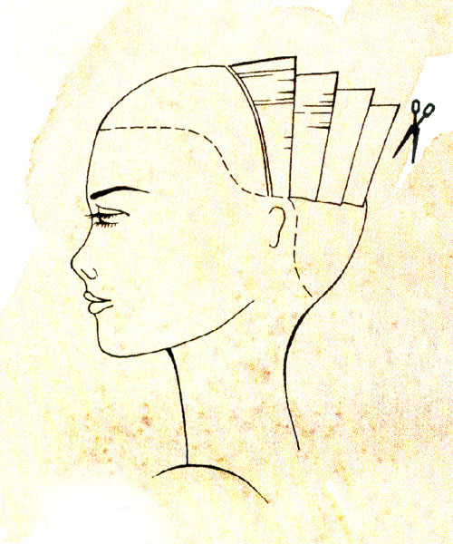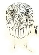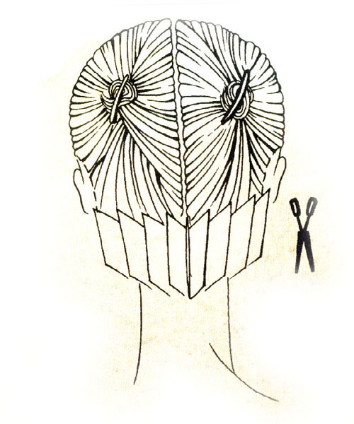 - At the temples, the strands are clipped to the length of the occipital strands, moving towards the face.