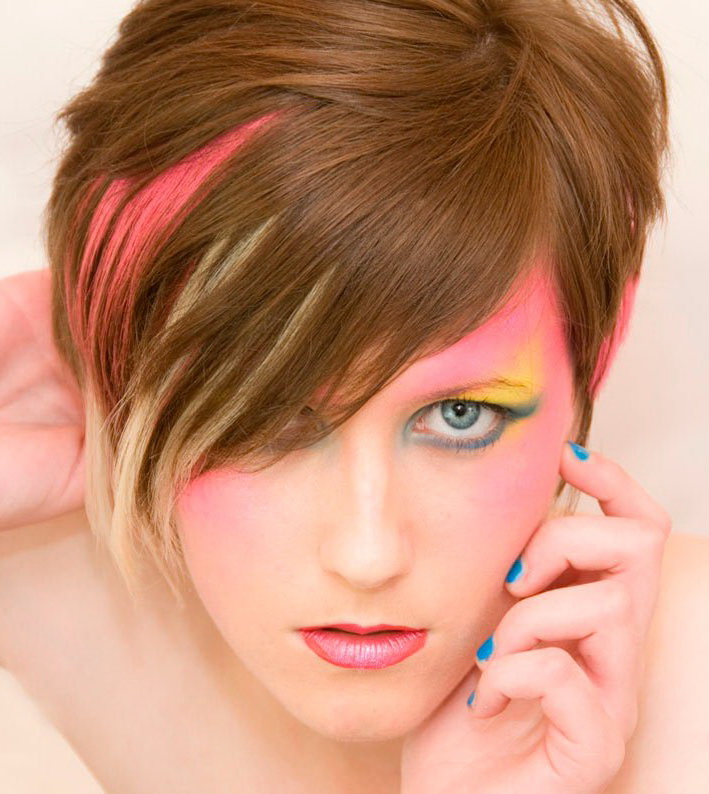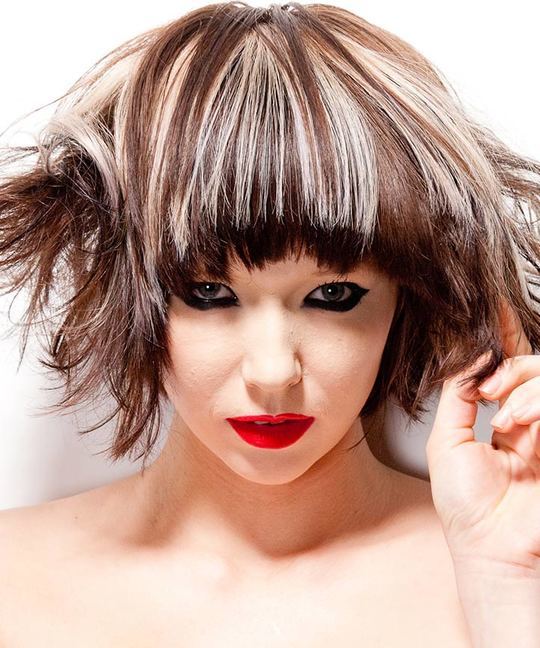 Experimenting with a palette of colors and shades, you can "play" with such an element as bangs. For example, its “torn” variation on a short head of hair will look even more spectacular and more seductive.