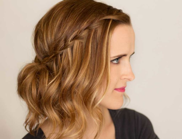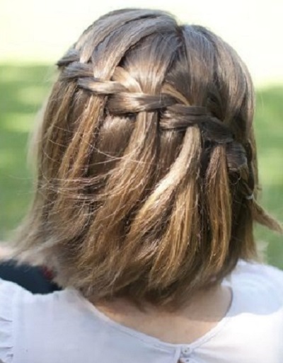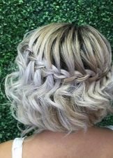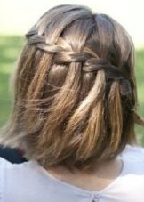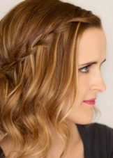 - Waterfall. This hairstyle is suitable for cutting a bob with lengthening. Wet hair will need to comb well, and then separate the strand from the temple. Then you should braid a pigtail from this strand towards another temple. In the links of this pigtails are strand from the top. At the second temple also a braid is woven from the strand and fastened with the help of pins. In order to fix the result, it is necessary to treat the hair with lacquer.