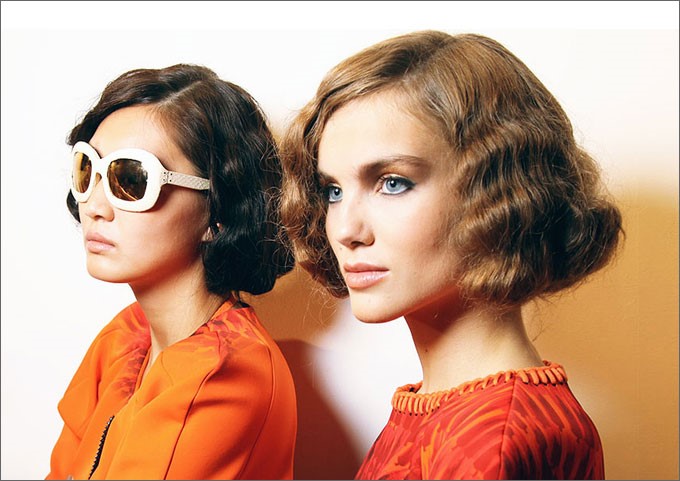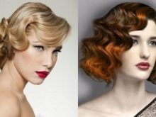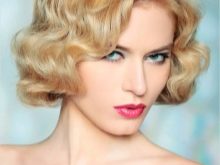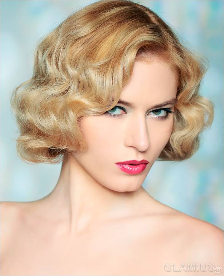 - Waves in retrostyle. This option is suitable for short hair. It can be made for a New Year's cooperative or a festive dinner with family and friends. To create such a hairstyle, it is necessary to treat wet hair with mousse, slightly dry and curl with a curling iron. Then you need to create a volume at the roots of the curls with the help of a pile. Bang should twist curling iron and lay to the side.